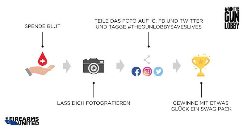 Lasst euch auch beim Blutspenden fotografieren, am besten in euren Firearms United, IAMTHEGUNLOBBY oder Je Suis Armé(e) T-Shirts, und postet dieses Foto auf Facebook, IG oder Twitter mit dem Hashtag #THEGUNLOBBYSAVESLIVES