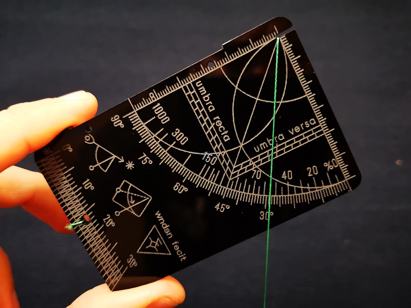 Wndsn: Mein Interesse begann vor ungefähr 10 Jahren mit der Idee grobe Schätzungen zu optimieren und daraus resultierenden Forschungen zu bewährten Daumenregeln. Als ich zum ersten Mal auf den Kamal (ein antikes, astronimisches Navigationsgerät) stieß, der durch seine Einfachheit und die Verwendung von Knoten als Skalen fasziniert. Vor ungefähr sechs Jahren begann ich erneut mit dem Konzept zu experimentieren und entwickelte ein Instrument, das eine Skala am Rand des Kamal und ein Nomogramm hinzufügt, um die Entfernung eines Objekts mit Hilfe einer Schnur direkt graphisch zu berechnen. Ich fing an, das Gerät zu produzieren mit dem Ziel, Zusammenhänge in der physischen Welt zu demonstrieren. Bald begannen andere es für den Unterricht in der Landnavigation zu verwenden. Bogenschützen und Jäger nutzen es zur Entfernungsmessung. Später fügte ich einen einfachen Quadranten auf der Rückseite hinzu und meine Kunden haben seitdem immer neue Einsatzbereiche gefunden.
