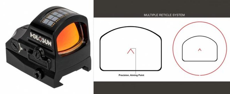 Eine besondere Kollaboration gehen Holosun mit Primary Arms ein. Die beliebte Pistolenoptik HS507C-V2 bekommt das Absehen von Primary Arms – ACSS Cyclops HG Reticle. Das besondere an dem Absehen ist die Größe. Das Absehen in der Mitte ist von einem überdimensioniertem Ring umgeben, welches hilft die Mitte zu finden.