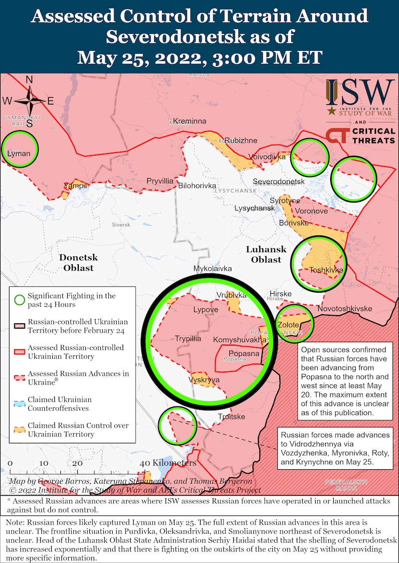 Die russischen Streitkräfte könnten die Schlacht um Sewerodonezk beginnen, bevor sie die ukrainischen GLOCs südwestlich und nordwestlich von Sewerodonezk vollständig abschneiden.
