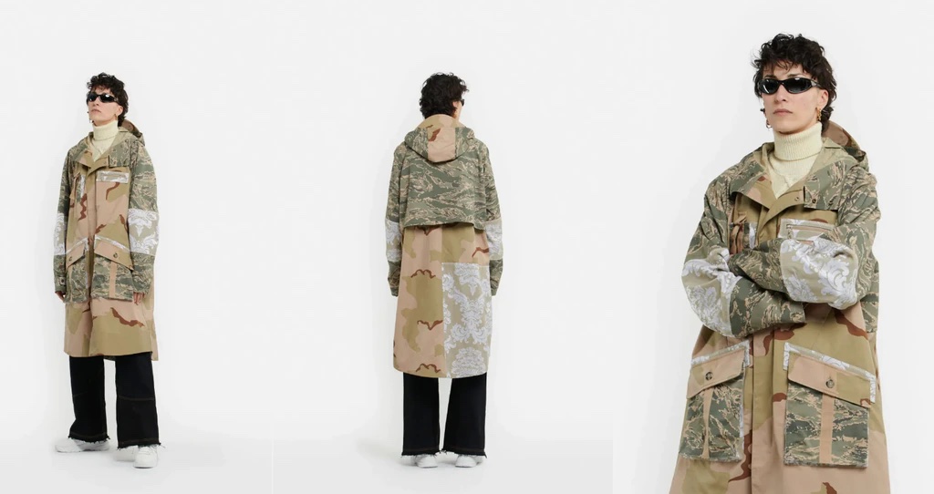 Das Highlight der zeitgenössischen Mode ist dieser Mantel von Marine Serre, der mit alten Camouflage-Mustern designt wurde. Das Stück wird für $1,750 verkauft und zeigt, wie Wert geschaffen werden kann.