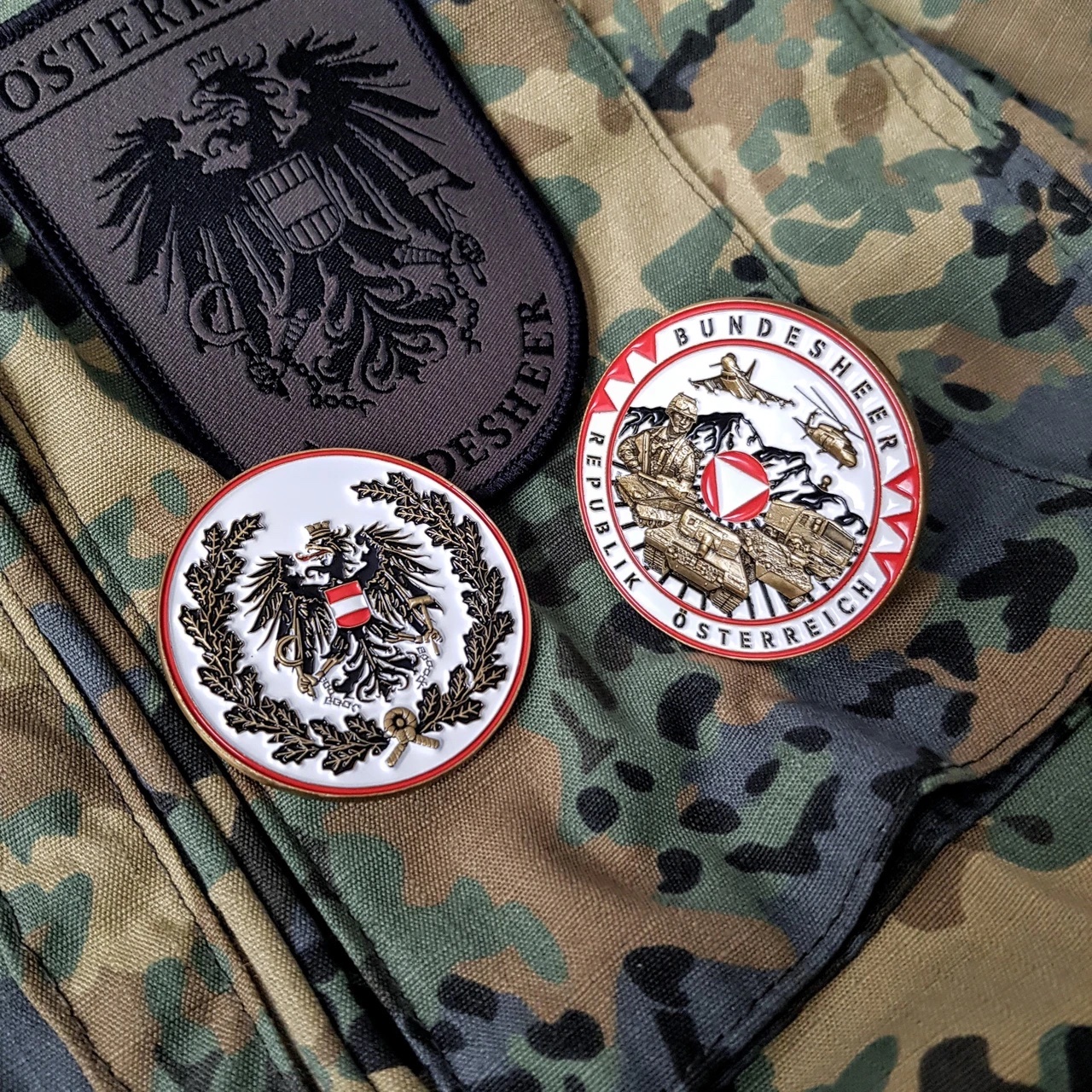Im Militär ist es hart, sang der alte Rheinard Fähnrich und die Jungen singen es auch. Glücklicherweise gibt es eine echte Bundesheer Challenge Coin. Exklusiv bei ALPINE DYNAMICS, dem Zuhause des Taktik Hans. Hier ist diese limitierte Bundesheer Challenge Coin nur erhältlich. ALPINE DYNAMICS im Internet.
