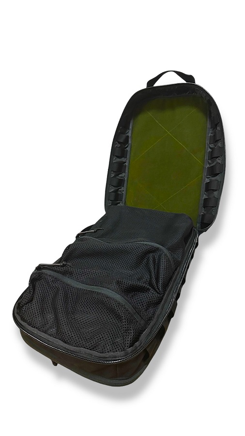 Das ersten und zweiten Hauptfach sind Mesh-Taschen für Organisation von Ausrüstung vorhanden. Polsterung für empfindliche elektronische Gegenstände wie Laptop sind mit eingearbeitet. Genügend Flauschflächen zum Anbringen von modularer Ausrüstung etc ist im gesamten Rucksack vorhanden.