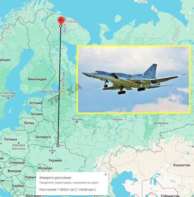 Quellen des ukrainischen Sonderdienstes teilten ukrainischen Medien mit, dass der ukrainische militärische Hauptaufklärungsdienst (GUR) mit Drohnen russische Militärflugplätze in Engles (Gebiet Saratow), den Flugplatz Dyaghilev und eine Ölraffinerie im Gebiet Rjasan sowie den Flugplatz Olenya im Gebiet Murmansk angegriffen habe. Die Quellen von Suspilne berichten, dass die russischen Streitkräfte eine unbekannte Anzahl von Tu-95, Tu-22, Tu-134 und Il-78 (Tankflugzeuge) auf dem Flugplatz Dyaghilev stationiert haben und dass die GUR-Drohnen einen strategischen Bomber TU-22M3 auf dem Flugplatz Olenya beschädigt haben.