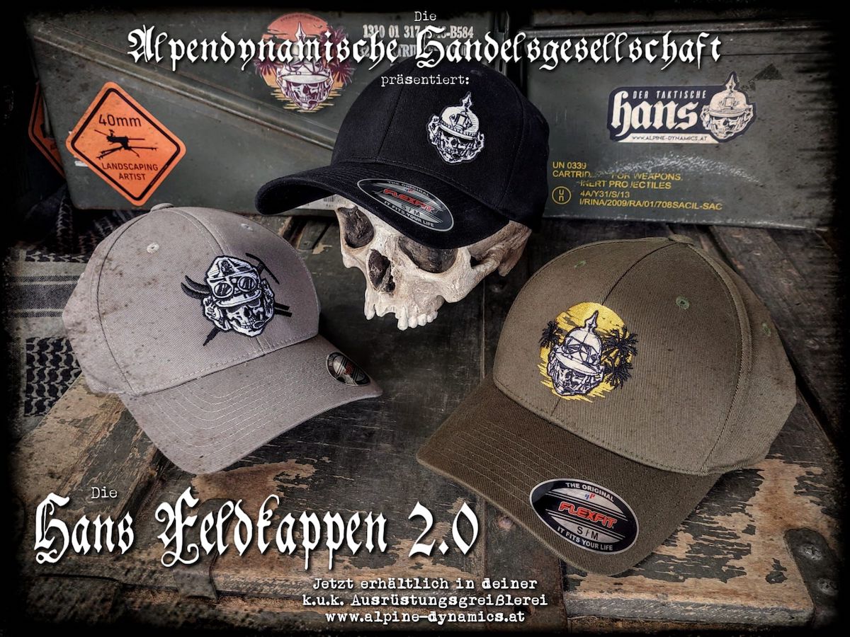 Oben ohne ist vorbei. Die lang ersehnte zweite Auflage der Hans Feldkappen ist da! Ob taktisch, tropisch, oder alpin, mit den neuen FlexFit Caps bieten ALPINE DYNAMICS etwas für jeden Geschmack und für hartnäckige Hans Fans.