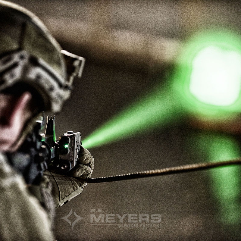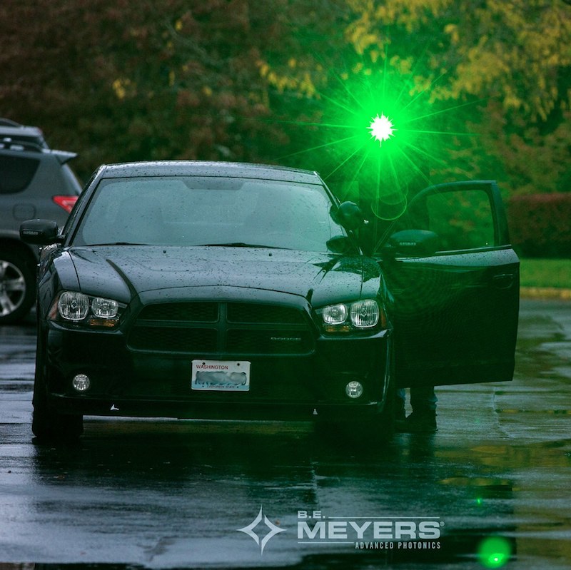 Das Glare Recoil von B.E. Meyers signalisiert mit einem starken grünen Lichtstrahl deutlich, dass man stehenbleiben oder sich entfernen sollte.