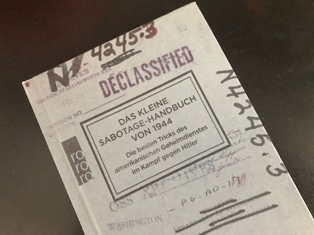 Das kleine Sabotage-Handbuch von 1944: Die besten Tricks des amerikanischen Geheimdienstes im Kampf gegen Hitler“, US Office of Strategic Services, Rowohlt Verlag, 2018, 112 Seiten, Euro 8,–