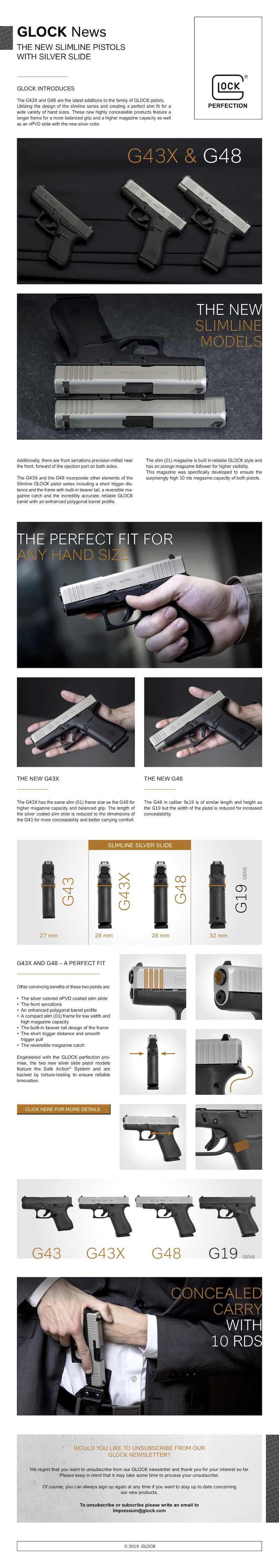 Glock 48 und Glock 43X – das sind die neuen von den Klassikern aus Österreich. Schmal gehalten, ausgerichtet für verdecktes Tragen. Keine Rail, weil man keinen Schnickschnack dran braucht. Hier ist das Infoblatt zu den neuen Waffen: