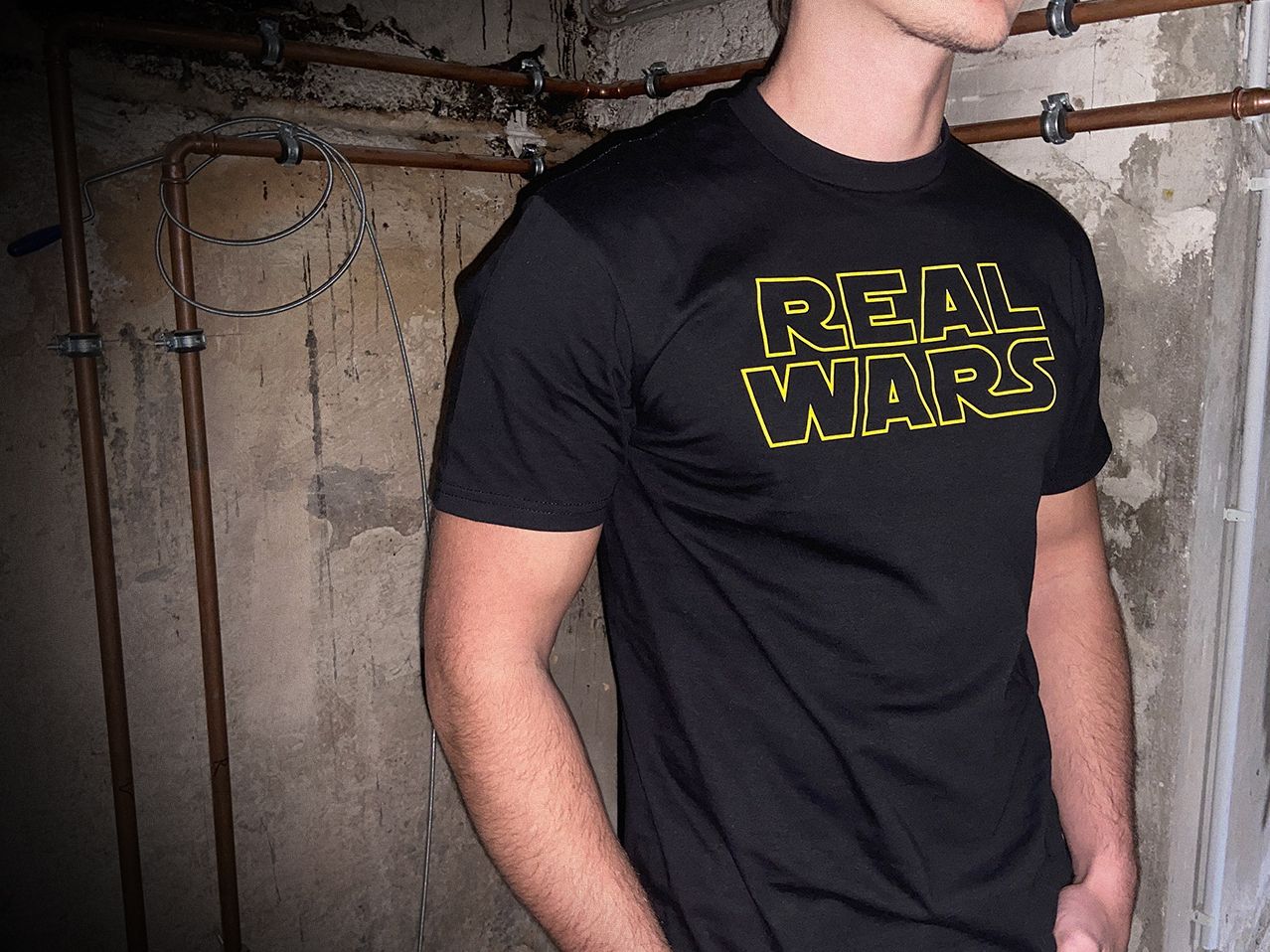 Das "Real Wars" T-Shirt von SPARTANAT ist ideal für Liebhaber von galaktischen Abenteuern. Es verkörpert die Guten und Bösen, Helden und dunklen Seiten, inspiriert vom Wirklichen. Holen Sie sich das Shirt und den Patch für eine starke Gemeinschaft.