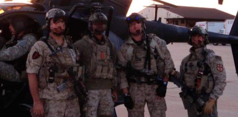 Unbekannten Standort, aber wahrscheinlich neuere Zeiten. Eine Gruppe von Elite-SEALs vor einem Little Bird-Hubschrauber. Alle in AOR1, tragen T-Shirts, uniforme HK416, auch ein klassisches Zeichen von DEVGRU. Man kann den Red Team Patch sehen. Die Plattenträger - wahrscheinlich Eagle Industries Assaulter PCs - scheinen zu klein für diese Männer zu sein. Hier ist eine ältere Red Team Ansicht.