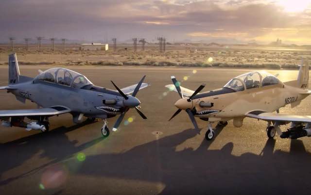 Luftwaffe muss nicht immer groß sein. Kleine Flieger sind im kommen, gerade wenn es asymmetrische Konflikte sind, in denen eine Luftwaffe Nahunterstützung fliegt, der ein Gegner gegenüber steht, der keine Kapazität in der Luftabwehr hat. Propellermaschinen sind kostengünstiger im Unterhalt und können ganz schön aufgepeppt werden. Das hier ist die T6 Super Tucano – eine andere Maschine für Contractors sollte aus Wiener Neustadt kommen, HIER unser Bericht über Erik Princes österreichische Luftwaffe.