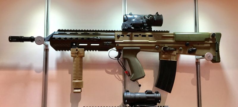 Heckler und Koch sind ebenfalls auf der DSEI in London vertreten und zeigen eine etwas modernere Variante des britischen L85A3 – dank Zubehör von ihnen. So gibt es jetzt eine RIS Schiene welche über die gesamte Oberseite geht.