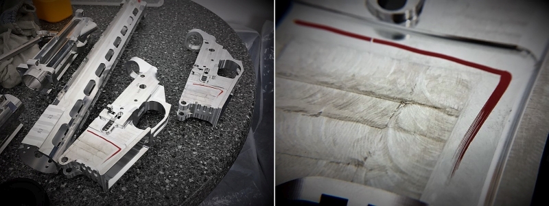 Gegenüber ist die Werkstatt mit Kleinteillager untergebracht. Dort werden die Waffen montiert. Interessant auch zu sehen, wie penibel DAR mit der Fertigung ist. Ein in unseren Augen einwandfreier Lower gehört zum Ausschuss, weil ein Teil nicht sauber glatt gefertigt wurde.