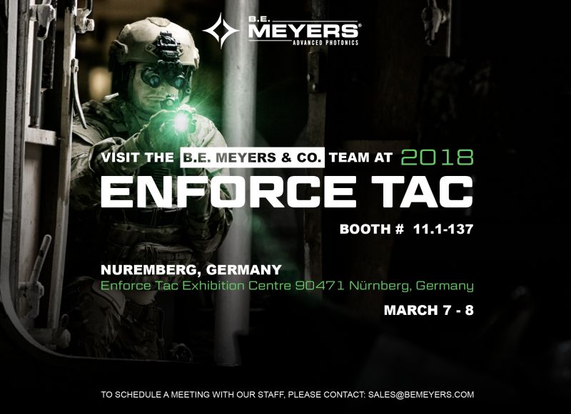 Kleine Sensation für die Enforce Tac am 7. und 8. März in Nürnberg: Zum ersten Mal werden B.E. Meyers all ihre Produkte und Lösungen auf der Enforce Tac vorstellen. Von verschiedenen Lasern bis hin zu aktuellen Mündungsfeuerdämpfern ist alles dabei, was B.E. Meyers zu bieten hat.