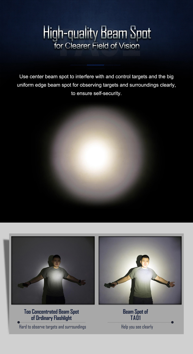 Speziell für die Exekutive wurde die TA01 entwickelt. Mit 500 Lumen und einem sehr konzentrierten Spot lassen sich mögliche Gefahrenquellen auf 50m perfekt aufklären.