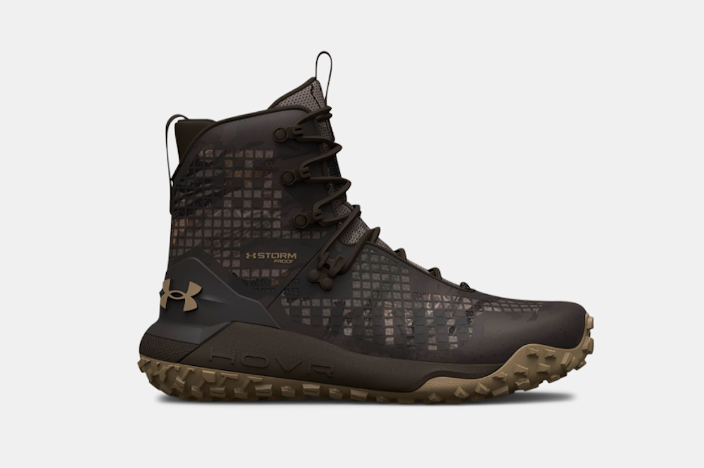 Die UNDER ARMOUR UA HOVR™ Dawn Waterproof 2.0 Stiefel sind auffällig mit einem Hauch von Multicam Black, wasserdicht und ideal für den Einsatz im Gelände. Sie vereinen Robustheit und Laufeigenschaften von Sportschuhen. Erhältlich auf der UNDER ARMOUR Website für 190 Euro pro Paar.