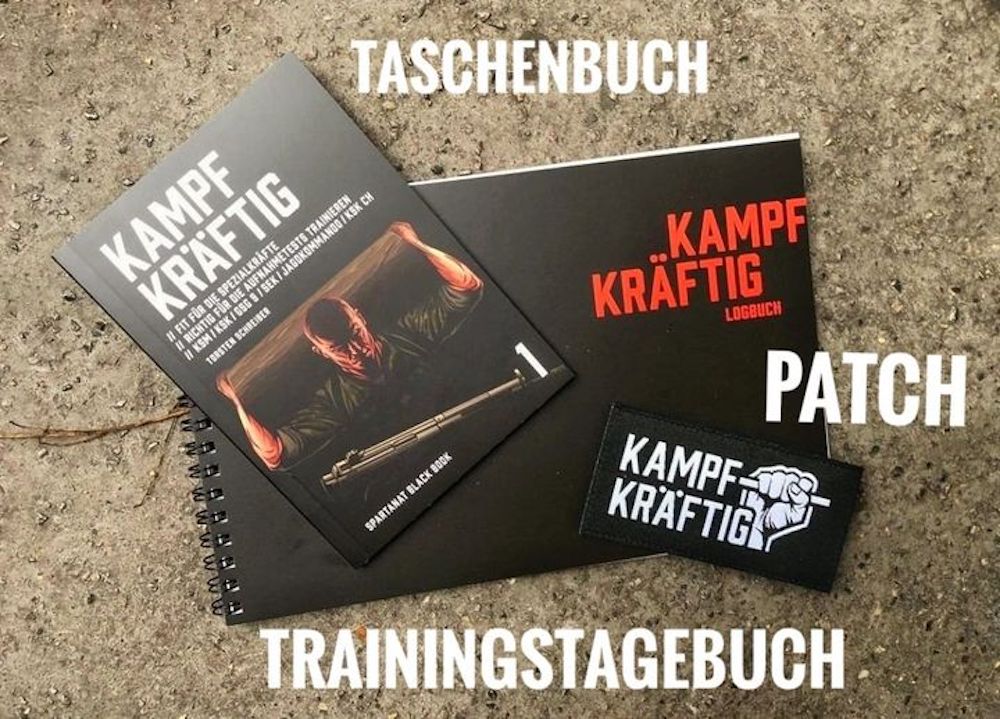 Das brandneue KAMPFKRÄFTIG Trainingstagebuch ist jetzt bei uns erhältlich! Dokumentiere dein Training und bleibe fit für die Spezialeinheiten mit dem KAMPFKRÄFTIG Trinity Bundle, bestehend aus dem SPARTANAT Black Book 1, dem KAMPFKRÄFTIG Trainingstagebuch und dem KAMPFKRÄFTIG Patch.