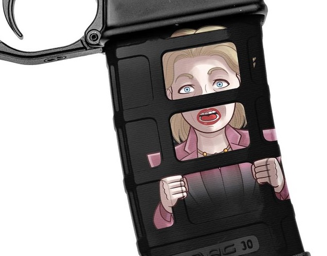 GunSkins stellt eigentlich Folien im Tarndruck her, mit denen ihr eure Waffe oder Ausrüstung tarnen könnt. Sehr beliebt sind ihre Mag Skins – HIER im SPARTANAT Review. Nun gibt es ein neue Klebehaut für eurer AR Magazin, die etwas anders ist, als all die anderen. Anstatt Tarnung ist auf dieses eine Karikatur von Hillary Clinton aufgedruckt. Nebenbei wurde die Riffelung des Magpulmagazins geschickt dazu verwendet, es so aussehen zu lassen, als ob Hillary im Kittchen wäre. Einige meinen ja da gehört sie hin, wir enthalten uns da einer Meinung und sehen es frei nach Roberto Blanko: „Ein bisschen Spaß muss sein“.