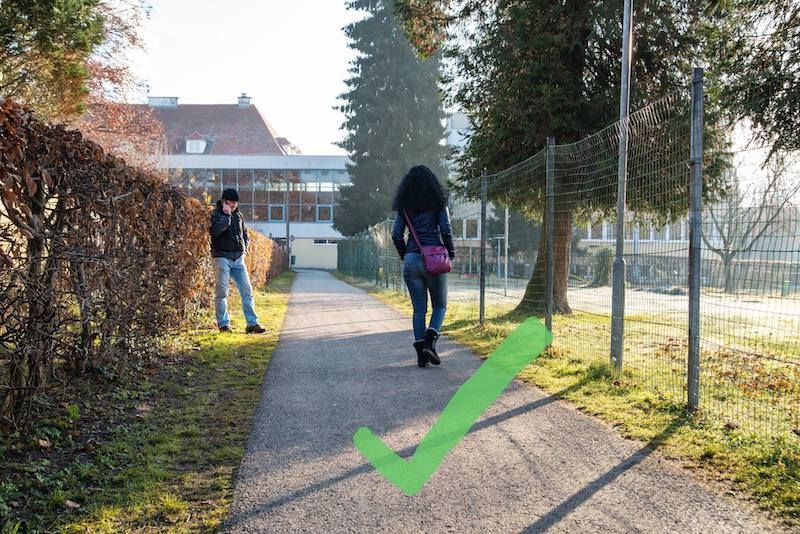 Abstand ist Sicherheit. Selbstverteidigung ist der letzte mögliche Schritt beim Selbstschutz. (Gestelltes Bild).