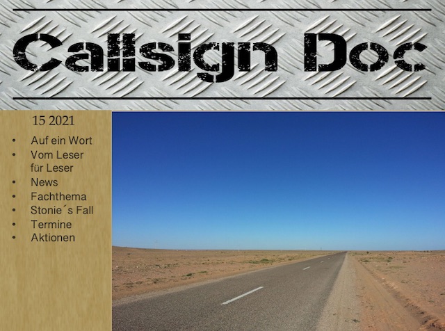 Wer den aktuellen Newsletter exklusiv und automatisch bekommen will ohne einen zu versäumen, muss sich HIER eintragen. CALLSIGN DOC landet dann per Mail. Alte Ausgaben sind im Archiv auf der Homepage der Capsarius Akademie verfügbar.