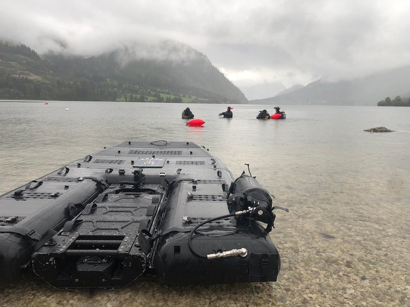 Warmes Wasser? Ist überbewertet. Zu viel Sonnenschein auch, der macht zwar die Landschaft schön, aber hat wenig mit der Experience Week von outer-limits zu tun. Da kommen Menschen an den Bergsee, die im Wasser arbeiten und Ausrüstung für Spezialisten wie Kampfschwimmer und SEKs testen wollen. Natürlich sind mit outer-limits auch die entsprechenden Firmen da, die ihre Ausrüstung präsentieren und testen lassen.