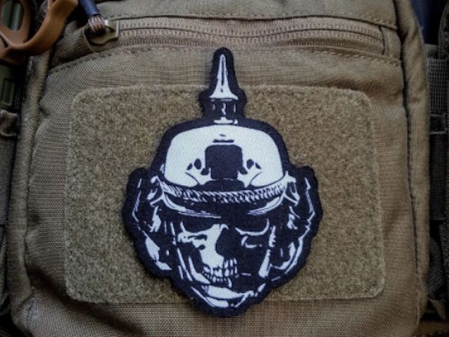 Hans, der Patch, ist tatsächlich der Patch für Hans, den taktischen Helmstachel. Hans sieht mürrisch aus.