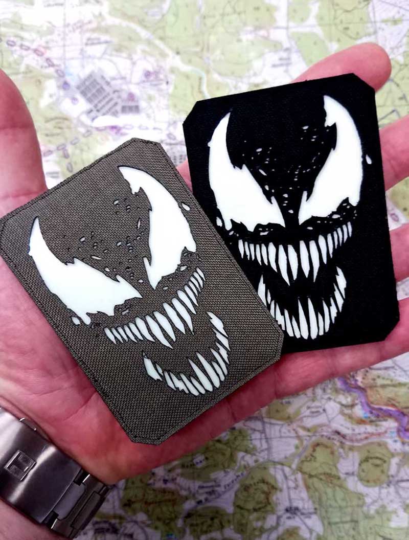 Da leuchten Dich die Zähne und die Augen aus der Finsternis freundlich an. Das sind die beruhigenden Momente im Leben, wenn man wirklich weiß: es ist vorbei. Nun, den Venom gibt es beruhingerweise ja nur im Film – und als Patch, der durch die Nacht leuchtet. HIER beim CAMOSTORE ist der Patch zu haben.
