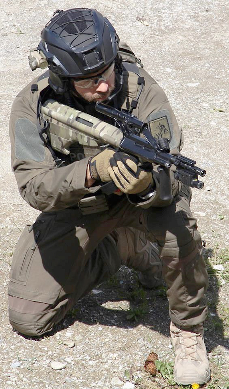 Wer von Kopf bis Fuß neu ausgestattet ist, hat oben einen neuen Helm von MSA Gallet mit Railsystem bekommen. Unten an den Beinen Lowa Zephyr. Schön zu sehen die UF-PRO Uniform. Beim seinem AUG hat sich der Operator hier nicht auf einen Paintjob verlassen, sondern Klebeband in Multicam verwendet.