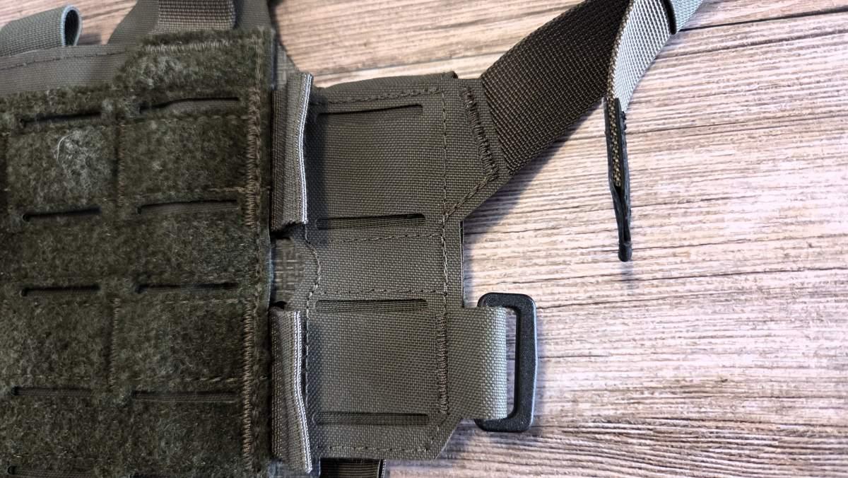 An beiden Seiten befindet sich ein optionales Erweiterungs-Set. Dieses besteht aus zwei versteiften Flügeln. Auf jeder Seite gibt es vier MOLLE-Schlitze. Die Schlaufen zwischen Frontplatte und Flügeln dienen zur Aufnahme der Duraflex-Schnellverschlussschnalle des Warfighter-Erweiterungssets für das Reaper Rig. Mehr dazu im nächsten Review hier auf SPARTANAT.