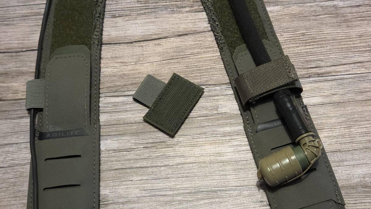 Dies dient dazu, ein Dangler Pouch, wie beispielsweise den Six Pack Hanger Pouch oder den Tourniquet Hanger von AGILITE, aufzunehmen und mittels Klettverschluss zu befestigen.