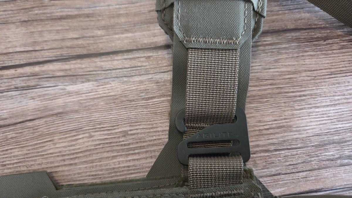 Nur der Rückengurt hat einen Duraflex-Schnallenverschluß für das schneller und leichtere An- und Ablegen des Chest Rigs.