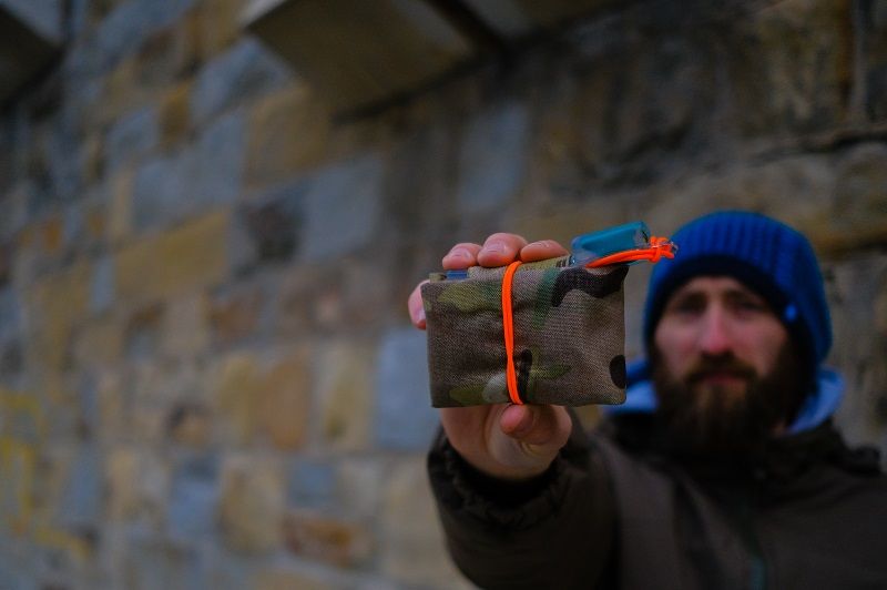 ISKIT steht für Individual Signaling Kit. Doch was bekommt ih in diesem Set? Zum Ersten eine 6 cm breite und 21,5 cm lange Hülle aus Cordura mit zwei Einschubfächern und einer Gummischlaufe. Den Signalspiegel hier im Bild haben wir übrigens – weil sehr praktisch – privat ergänzt.
