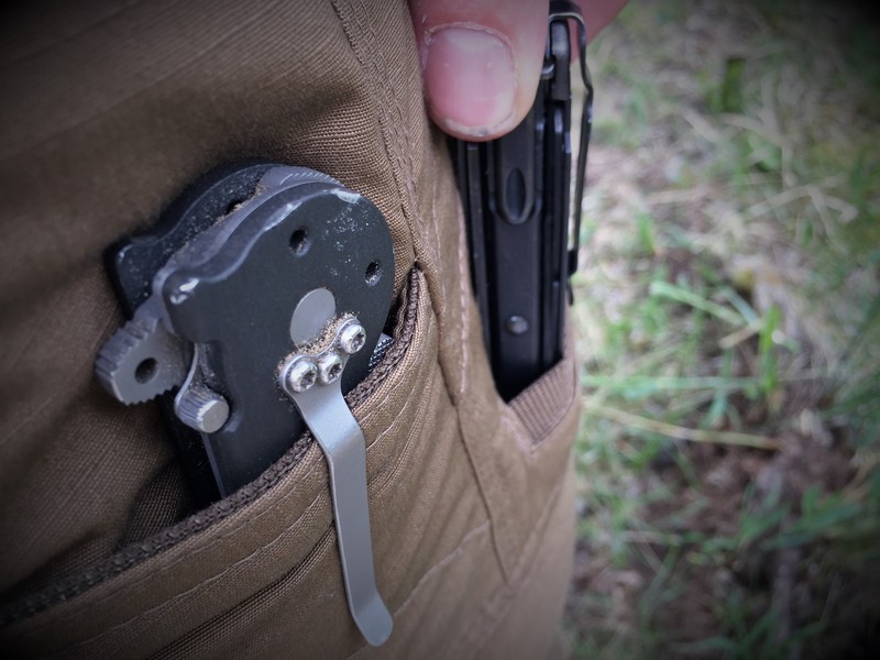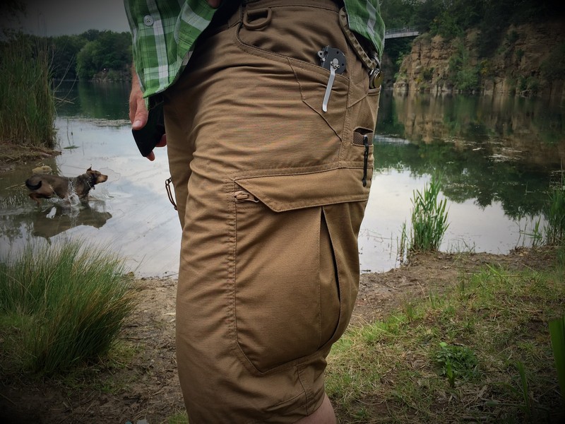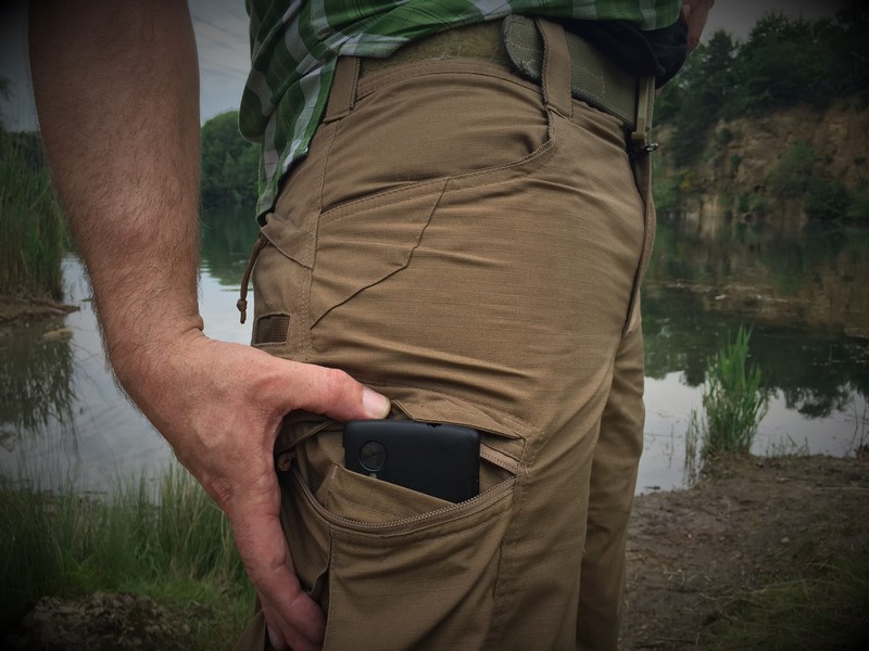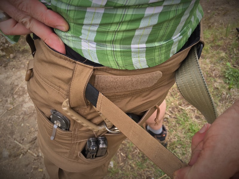 Am hinteren Oberschenkel findet man beidseitig eine verstärkte Einschubtasche, die für Messer, Tools oder Pistolenmagazine gedacht ist.