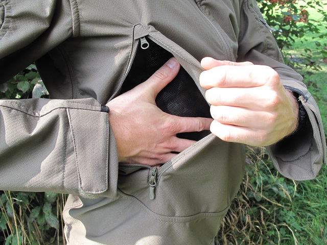 Nun zu den Taschen, die bei beiden sehr gleich ausfallen. Zum Einen haben wir da die nicht mehr wegzudenkenden gezippten Oberarmtaschen mit ausgesetzem Klett, zum Anderen zwei große Brusttaschen mit Zweiwege-Reißverschluss. An den Stulpen gibt es eine Weitenverstellung mittels Klett. Bei der Harpagus ist diese mittels Gummi gearbeitet, bei der Harpia aus dem Jackengewebe.