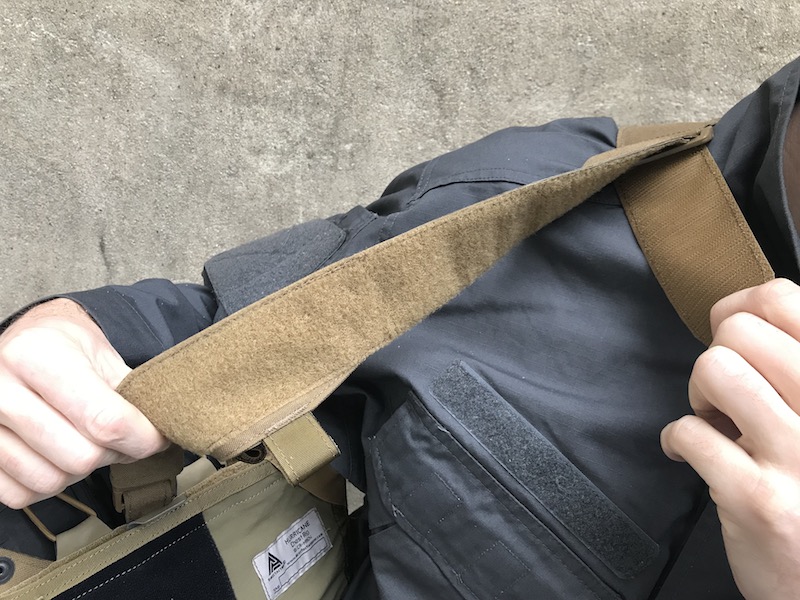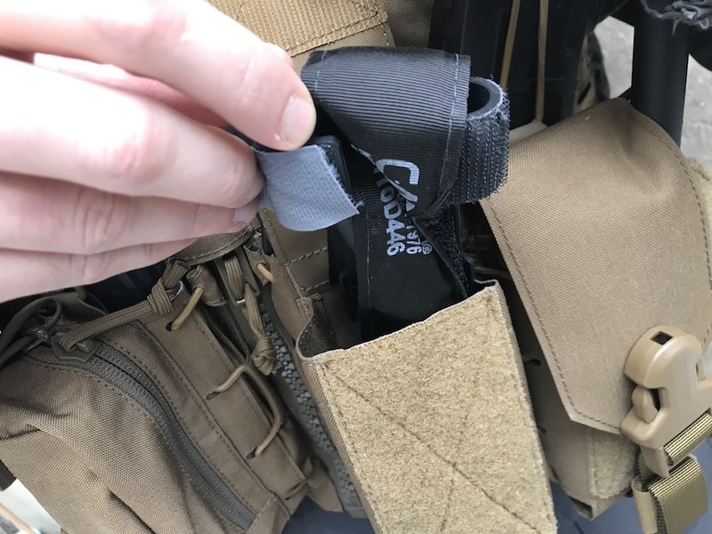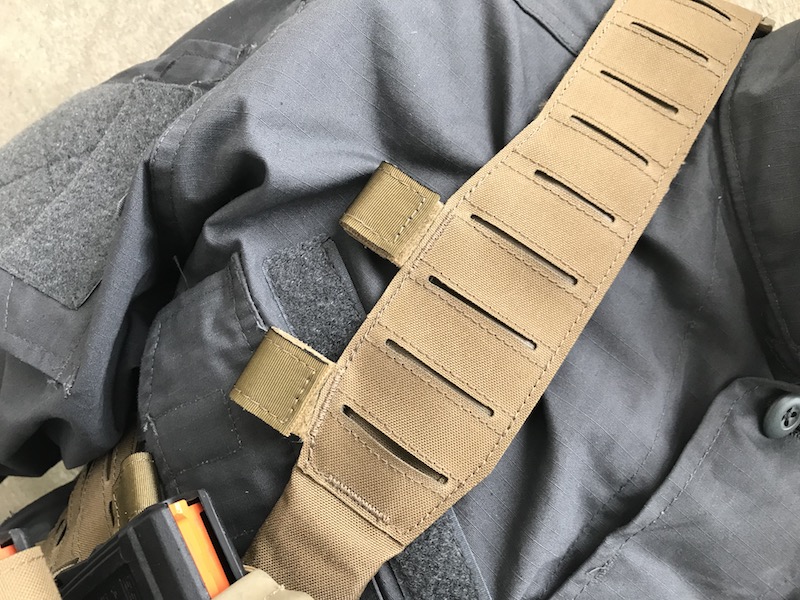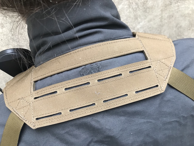 Über die Brust rauf zur Schulter gibt es auch MOLLE und daneben klettbare Kabeltunnel.