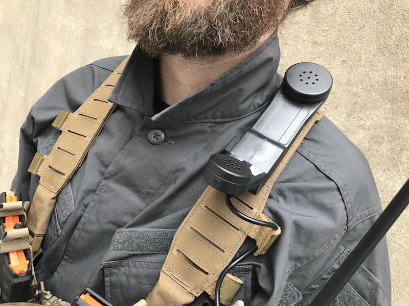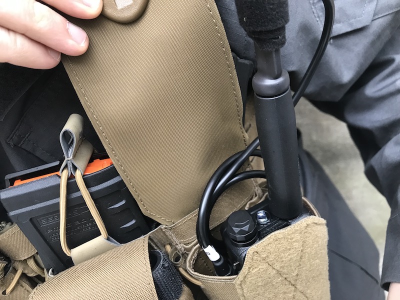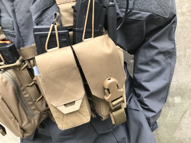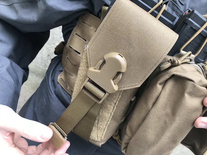 Daneben ist bei uns das Funkgerät. Eigentlich eine Verschwendung, weil der Träger hier auch zusätzliche Munition mitnehmen könnte. Aber wir haben keine extra Funke-Pouch angebaut.