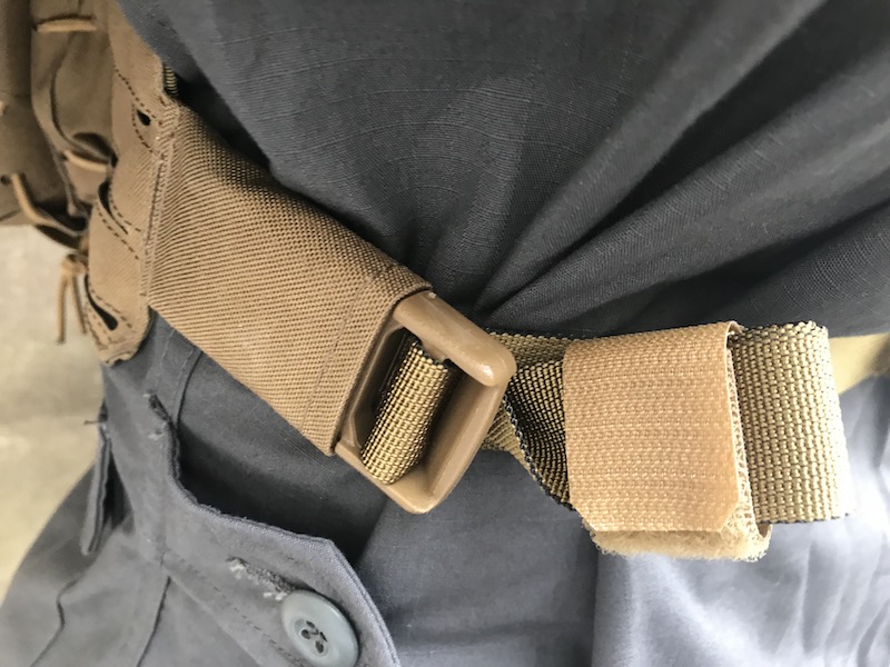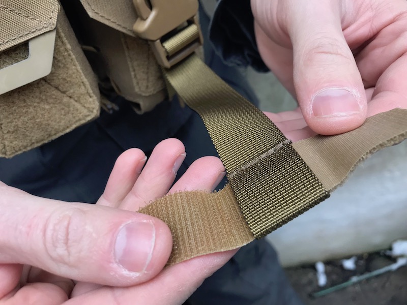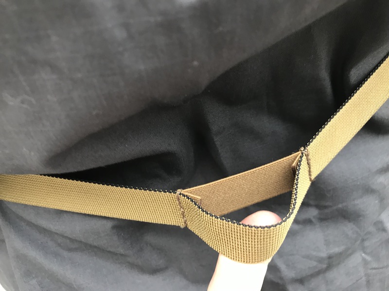 Ein klassisches Beispiel dafür, dass jemand mitgedacht hat und euch das Leben vereinfachen will. Em Ende des Riemens ist ein Velcro-Streifen vernäht.