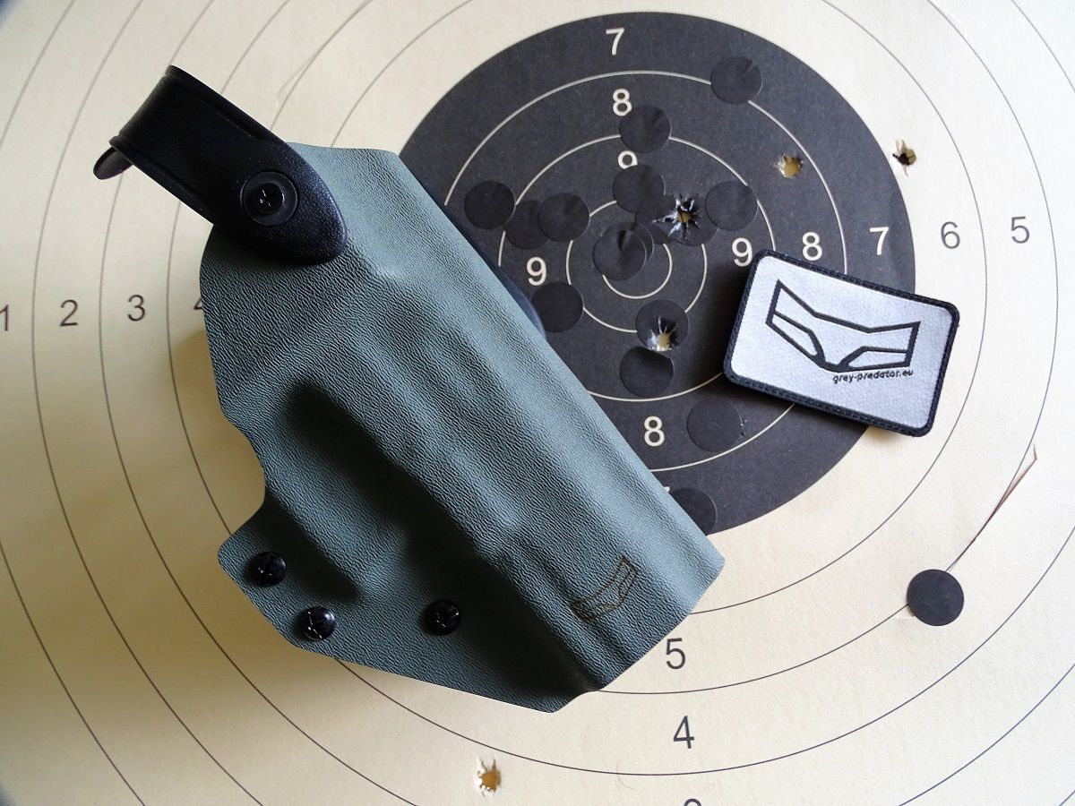 FAZIT: Das Holster hat den Testlauf mit Bravour bestanden. Von einem sicheren Klicken beim Einführen der Waffe bis hin zu einem soliden Halt während eines ganzen Tages mit Laufen, Hindernisparcours und Training auf dem Schießstand, schnelles Ziehen und einfaches Zurückführen in das Holster hat das GREY PREDATOR die Arbeit erledigt.