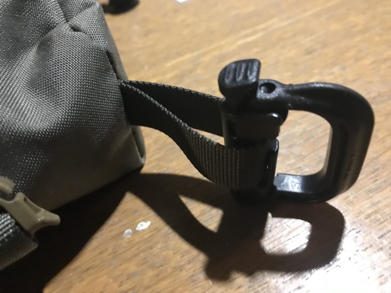 Einmal haben wir da eine Öse für Karabiner. Wir haben uns für einen Grimlok entscheiden.