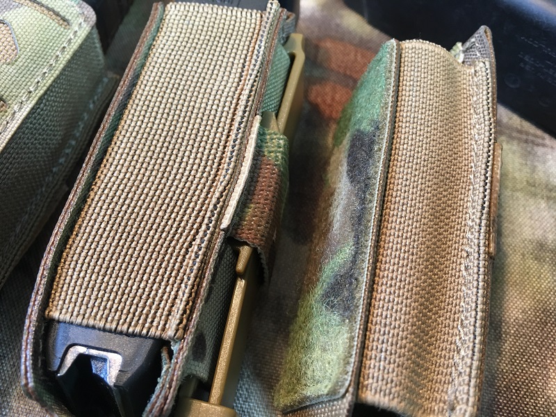 Die Magazine finden ihren Weg sehr leicht in die Taschen, da sie im leeren Zustand doch gut geöffnet bleiben. Die Haltewiderstand der Taschen kann nicht angepasst werden. Auf Dauer könnte das zu einem Poblem werden, aber bis jetzt hat der Gummi noch nicht nachgelassen.