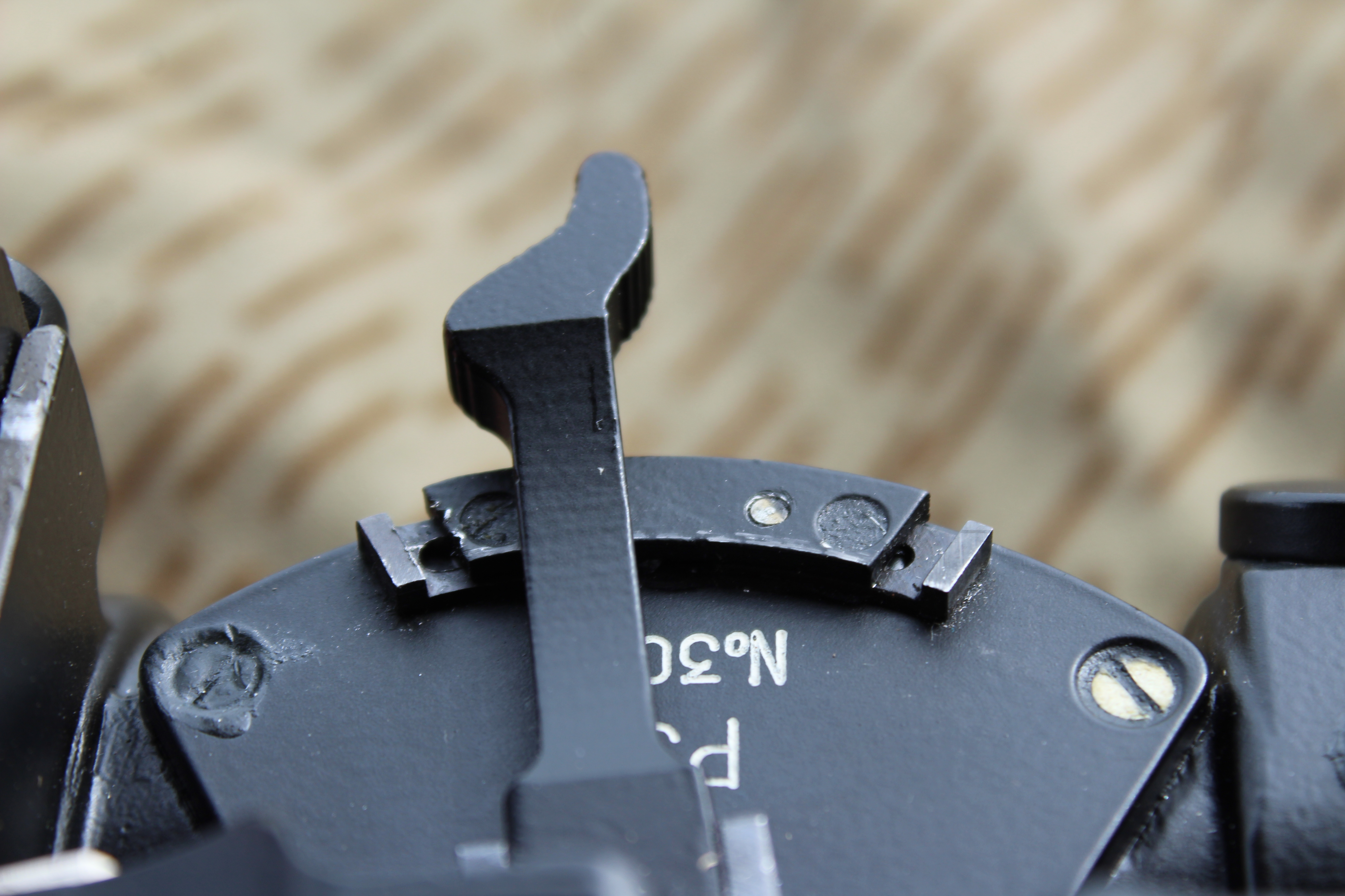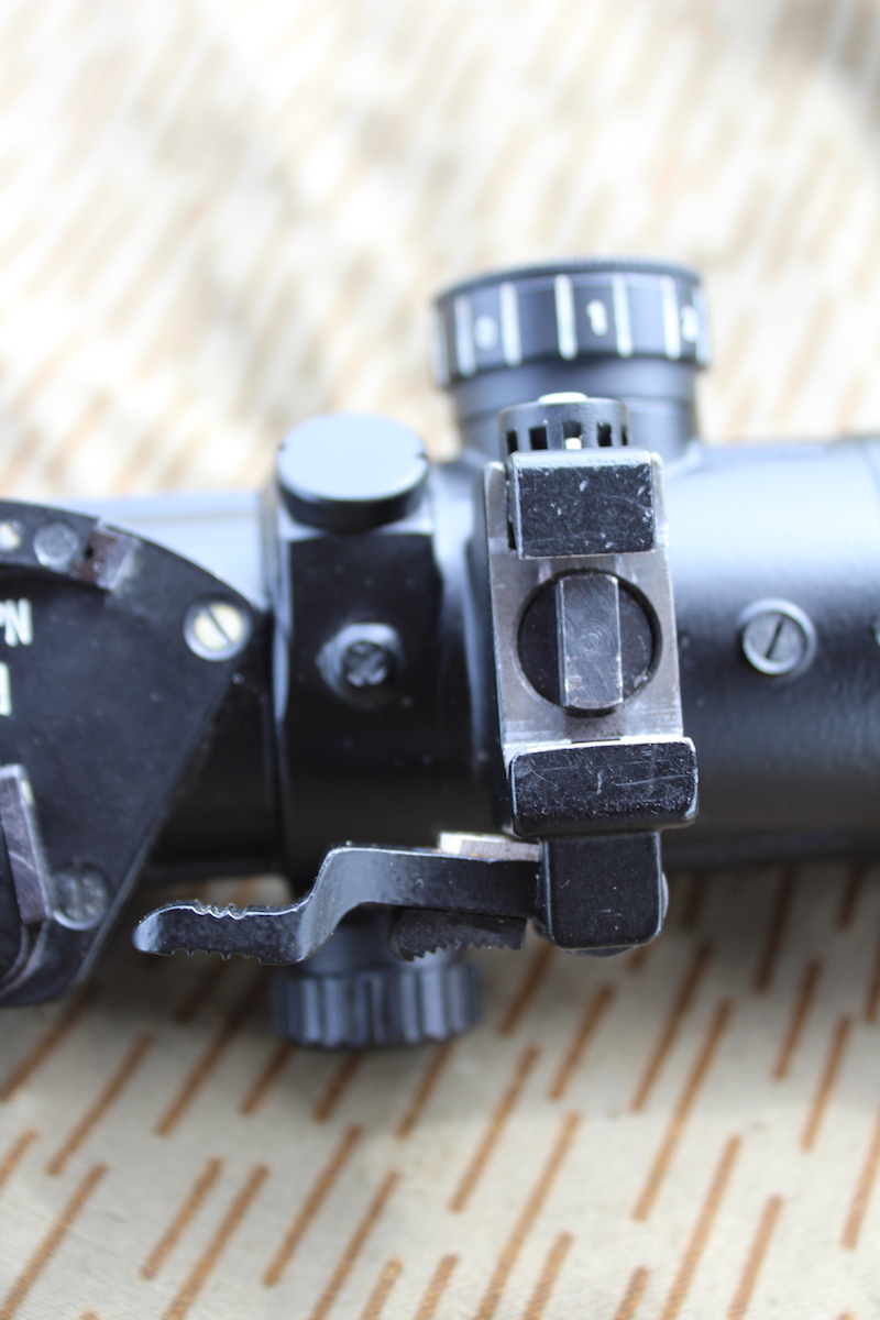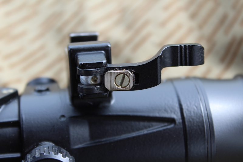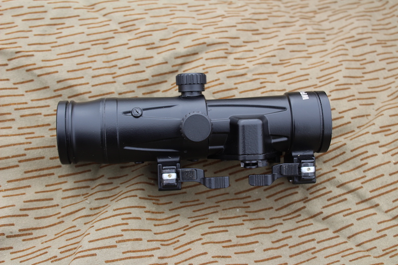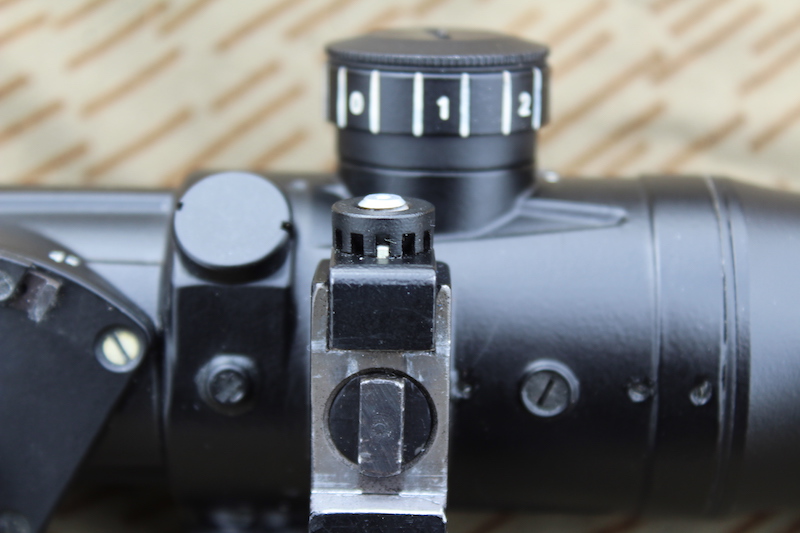Die wesentliche Funktion ist der Stellhebel mit dem zwischen 1-facher und 4-facher Vergrößerung geschalten werden kann. Das ist hier gleich wie beim Elcan Specter DR gelöst. Im Inneren ist die Frage der Vergrößerung aber verschieden gelöst – das PSU arbeitet mit einer Linse, das Specter DR mit einem verschiebbaren Prisma.