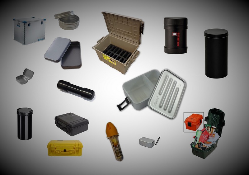 Unsere Boxen sind aus Blech und haben keine Dichtungen – sind damit auch nicht wasserdicht. Abhilfe schaffen hier Zipperbeutel oder Gummis, die dann den Behälter abdichten bzw. schützen. Natürlich gibt es auch fertige Lösungen, aber nicht zu dem Gewicht/Preis.