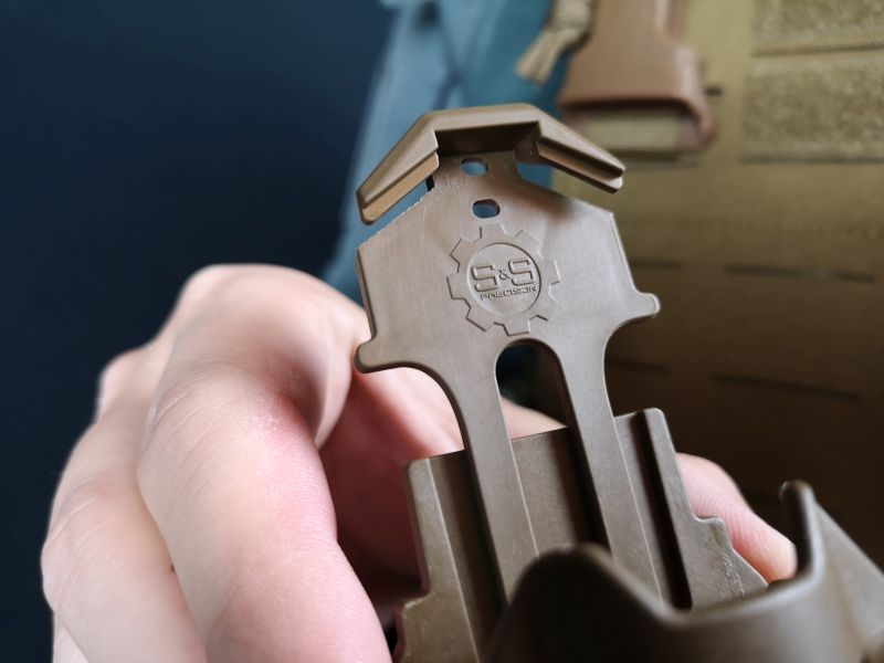 Dieser ermöglicht es das Manta Strobe auf MOLLE zu fixieren. Hier die Unterseite zu sehen.