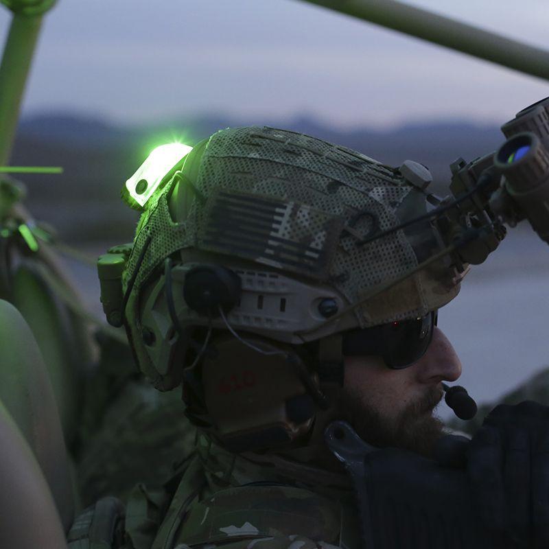 IR „Low“ LEDs sind nach unten gerichtet, sorgen für gute IFF Erkennung mit minimalem Glare. „High“ LEDs sind nach oben gerichtet und strahlen mit maximaler Helligkeit für größtmögliche Reichweite. Hier zu sehen „High“ Version. High/Low steht in der Modellbeschreibung und kann je nach Bedarf ausgewählt werden.