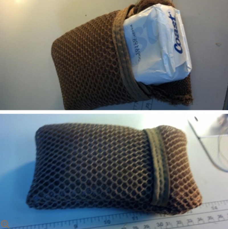 Das ist der ganze Zauber: eine kleine Tasche aus antimikrobakteriellem Mesh Gewebe mit einem Schlitz in die man ein Stück Seife stecken kann. Ihr habt also die ganze Körperreinigung auf einen Griff. Im Feld einfach auspacken und ab unter den tropischen Wasserfall und großes Reinemachen.