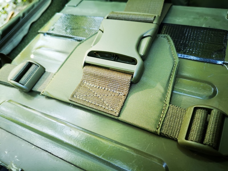 Die Halterung für die Funke wird mittels PALS eingefädelt und mit Klett gesichert. Das hält bombenfest und wir sind mit dem Rucksack nicht zimperlich umgegangen.