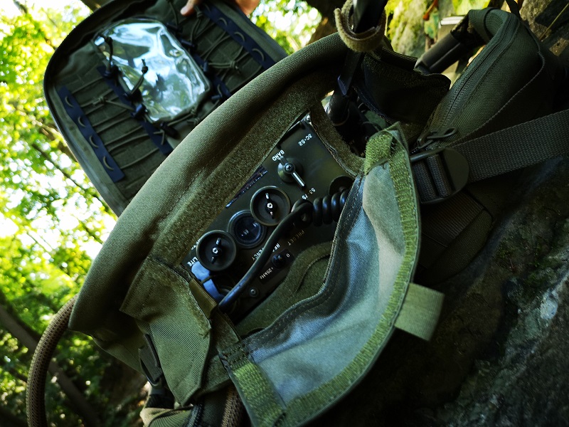 Hier nochmal ein Bild davon zur Veranschaulichung. Der Antennendurchlass rechts im Bild ist auch gut zu erkennen. Das heißt, der Fernmelder kann auch mit geschlossenem Rucksack prima arbeiten.