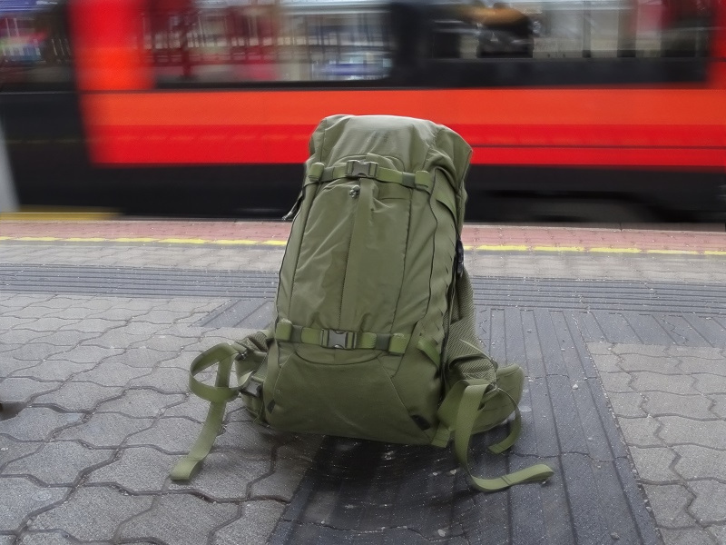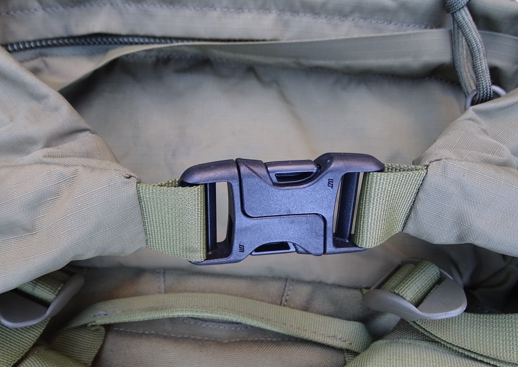 Die senkrecht verlaufenden Kompressionsriemen sowie der Roll Top sind mit Wojin Verschlüssen versehen. Die Riemen sind längenverstellbar und mit Gummischlaufen versehen, damit der Rest des Riemens nicht herumbaumelt und stört. Am Ende befindet sich ebenfalls eine Leiterschnalle aus Metall und auch diese Riemen können komplett entfernt werden.