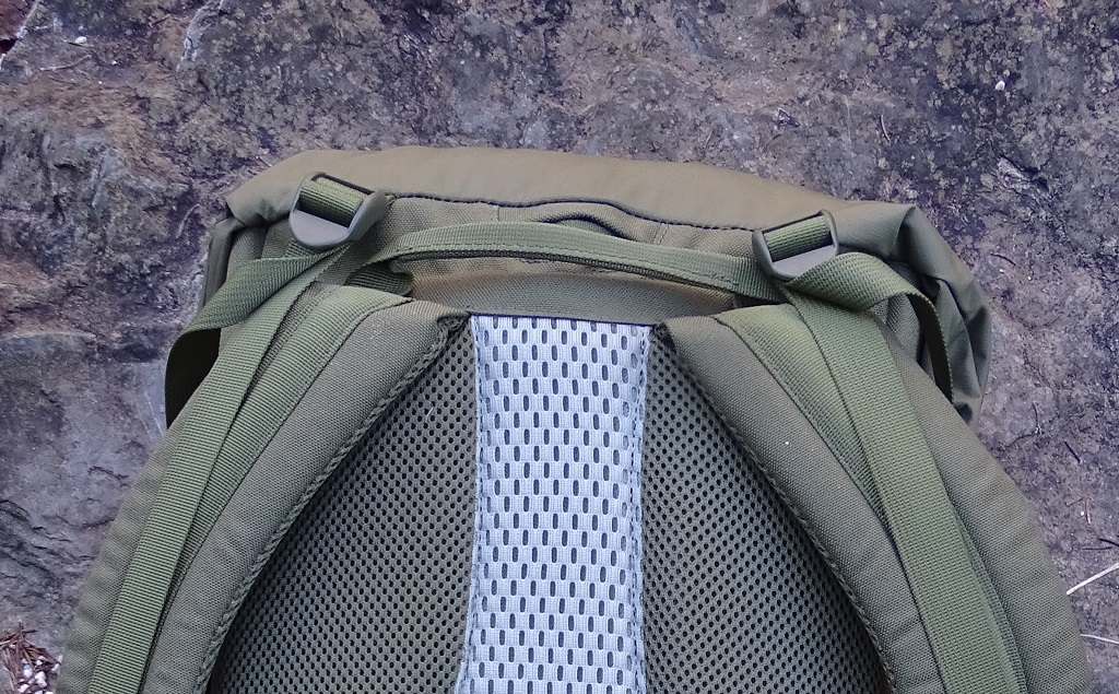 Die Wojin Verschlüsse am Roll Top können in beide Richtungen verwendet werden. Auch ohne die Kompressionsriemen an der Seite zu benutzen, kann der Sentinel durch das Einrollen des Rucksackdeckels eingerollt und verschlossen werden. Dadurch wird der Rucksack nicht wasserdicht.
