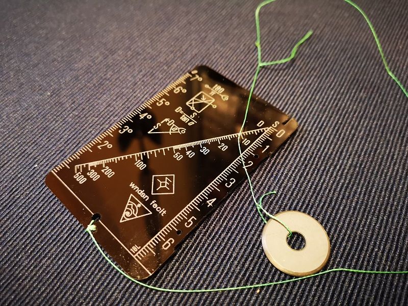 An der Unterkante findet ihr eine Skala für ein Inklinometer von Null bis Dreißig Grad. Dieses gibt euch die Neigung zur Vertikalen wieder. Bei Wndsn findet ihr eine gute Erklärung. Für eine noch genauer Ablesung seht ihr eine Vielzahl an Linien. Diese entsprechen den Skalen für Winkelminuten.